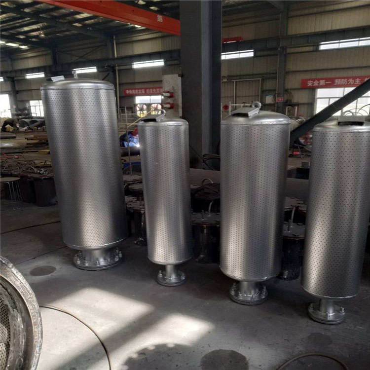 鍋爐排汽消聲器是建立在微穿孔板消聲原理上制造。電廠鍋爐蒸汽排放一般流速大,而流速大對小孔消聲影響大。所以我們需先控流,經過一次控流后的蒸汽再進入擴張室,再進一步降壓消聲。蒸汽經大容積降壓后,從而形成低壓蒸汽噴出。在此過程中,氣流是經小孔徑噴出。噴出后其各倍頻帶的聲功率已降低,而聲壓級的頻率被推高到20000Hz以上范圍,其噪聲大為削弱。但部分頻率的二次噪音還需要進一步消聲。我們在擴張室外加裝阻性吸聲棉結構,它系根據降壓體所發(fā)出的剩余噪聲的頻譜特性所設計,用以有效地吸收剩余噪聲。當用戶按要求安裝后,總消聲量要達30-60分貝,使之達到要求。